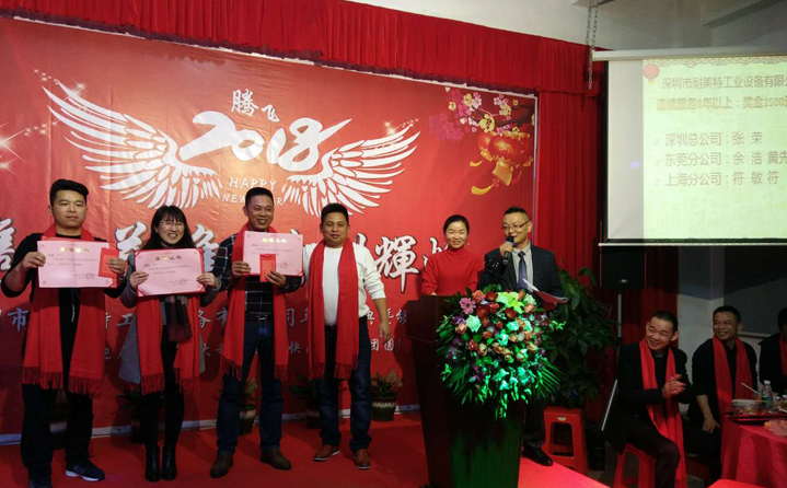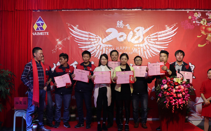 席間耐美特集團(tuán)公司高層領(lǐng)導(dǎo)人為2017年度優(yōu)秀員工頒發(fā)了獎(jiǎng)金及榮譽(yù)證書,以鼓勵(lì)大家在2018新的一年里再接再厲取得更好的業(yè)績(jī)。