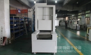 2、外形尺寸(約):總長10200mm*總高1770mm(不含馬達(dá)高)*總寬1050mm,地面到網(wǎng)帶的高度為900mm,內(nèi)寬為650mm,進(jìn)料高度為500mm;烘干部分總長8000mm,分4段,每段2000mm,烘干區(qū)前后設(shè)有自動升降門;出口處需設(shè)有阻擋氣缸和治具感應(yīng),可以自動和手動運(yùn)行??梢允謩忧灏?,把機(jī)內(nèi)托盤手動放出。